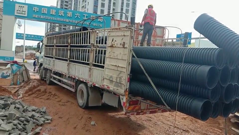 采用規格:HDPE雙壁波紋管、塑料檢查井、七孔通信管、PE給水管客戶工地位置:曲靖云南